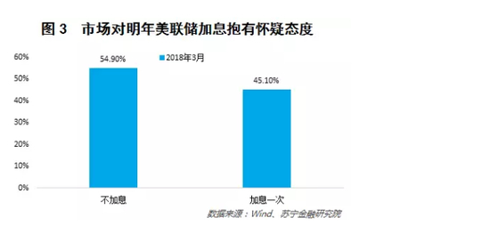 不过,目前市场上对明年3月美联储加息抱有怀疑态度,现在市场预计明年3月加息的概率只有45%(参见图3),但随着美国经济数据持续向好以及特朗普税改落地,市场对加息的预期也会抬升。