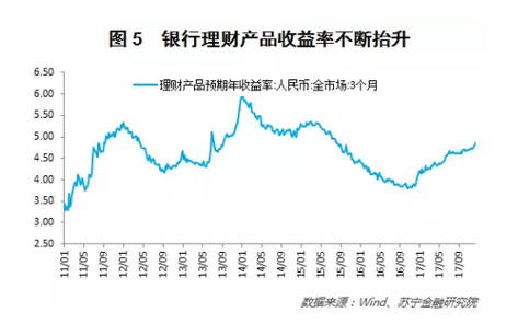 首先,明年2季度开始央行的货币政策可能会出现边际的改善,因此在明年1季度可以购买中长期理财产品。2016年4季度以来,银行理财产品收益率就不断抬升,背景是央行在倒逼金融机构去杠杆的目的下适度维持了资金面的紧平衡(参见图5)。明年来看,预计最快2季度开始,经济下行的态势会不断被数据证实,央行的货币政策可能会出现边际的改善。因此,明年最重要的投资决策就是在1季度购买中长期限的理财产品,比如:原来购买日度开放的货币基金,那可以改成购买季度开放的货币基金;原来购买1个月期限的理财产品,可以改成购买6个月甚至1年期的理财产品。这样就算明年下半年利率走低了,你也提前锁定了自己的高收益。总之,明年1季度最好买一些中长期限的理财产品,拉长自己的投资期限。