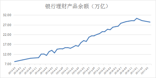 近几年银行理财业务高速发展,规模快速扩张的背后催生了大量的同业业务,风险也在不断累积。央行于2016年中推出升级版的宏观审慎评估体系(MPA),将同业业务也纳入监管范围;银监会在同年7月底下发了被称为“史上最严监管新规”的《商业银行理财业务监督管理办法(征求意见稿)》;2017年4月银监会密集下发监管文件,开展银行业“三套利”、“三违反”和“四不当”专项治理工作,重点指向同业、银行理财、委外等业务,引导银行业的金融去杠杆工作。不断升级的监管政策和日益严峻的去杠杆态势下,银行开始控制理财发行规模,调整原有的经营思路,远离资金套利,回归代客理财本源。