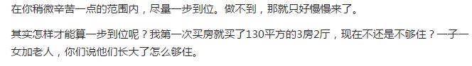 这周刷帖子,看到这样一个问题:买房子要一步到位还是首套过渡到第二套改善好,想必这也是不少朋友纠结过的问题,看了一下评论,并没有看到说完全支持一步到位,或者完全支持改善过渡,而是分情况讨论的。