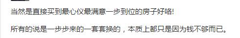 覃瀚理财师的总结是:有钱想买什么样的,买几套都行,所有说一步步、一套套换房子的,本质上都只是因为钱不够而已。戳中了不少买房人的痛处,对于刚需来讲,无非就是想安个家,钱够多,当然是越大越好,越舒适越好,有钱跟没钱的承受能力还是差很多的。