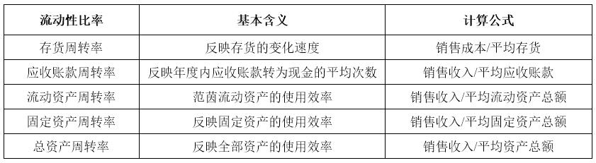 流动性指标分析的目的是观察企业在一定时期内资金的周转情况,是对企业资金活动的效率分析,主要指标含义及计算公式如表3所示: