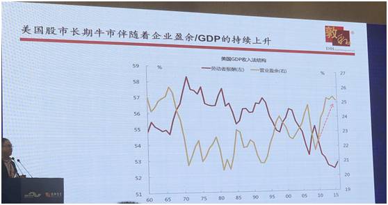 实际上我们看美国在过去十年的牛市当中,很重要的特征,就是企业的盈利在整个国家的收入比例中,是持续提高的。当然另一方面不好的结果是,劳动的报酬是持续下降的,即美国的贫富差距在不断的拉大。那怎么办?对于穷人来说,只能加大投资力度,来分享富人通过企业盈利的增长,其实投资股票可以理解为缩小贫富差距的形式。