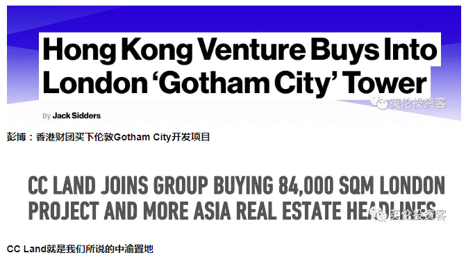 如果英国地产界也有奥斯卡,今年的大奖记得一定要颁给CC Land(中渝置地)。
