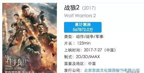 1、《战狼2》提升了中国电影市场票房天花板,疯狂创造各种记录,掀起一阵狂欢和观影热情,拯救了暑期档甚至一定程度拯救了今年的国产电影市场。