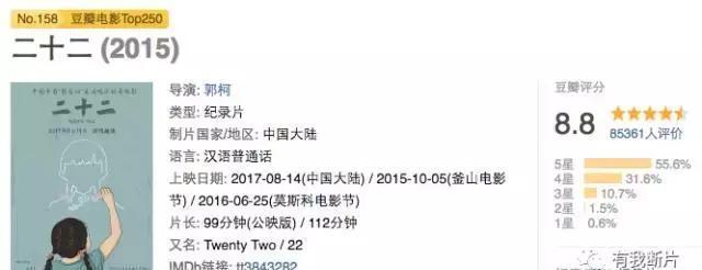 5、《二十二》创造了国产纪录片最高票房纪录。