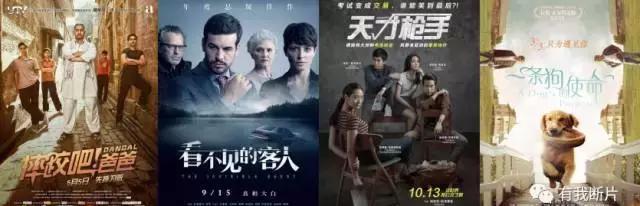 今年的批片中,票房冠军《摔跤吧!爸爸》,小成本佳片《看不见的客人》、《天才枪手》、《一条狗的使命》均不是传统意义上受欢迎和有票房爆发能力的类型,但口碑和票房反馈都很好,甚至占据了同档期的所有热点。