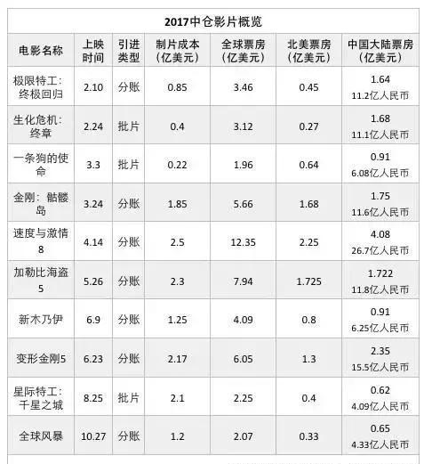 中仓影片的增多,中仓影片中分账片增多也是今年进口片的一大变化,今年10部中仓影片中有7部是传统意义上实力比批片更强的分账片。而2013年至2016年四年中,中仓影片中分账片共计才8部。
