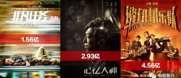 另外,全年中有很多上映前被寄予撑起相应档期厚望的商业片票房不及预期,比如清明档的《非凡任务》,五一档的《记忆大师》,暑期档的《建军大业》,国庆档的《追龙》、《缝纫机乐队》等。这些片子相对于同档期上映的国产片来说,大都口碑尚可,但是票房表现不尽人意。