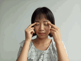 轻闭双目,用食指与中指指腹分别顺时针与逆时针缓慢旋转按摩眼皮5~10次,也可在相应穴位处轻按压约1分钟,安神止痛的效果更佳。
