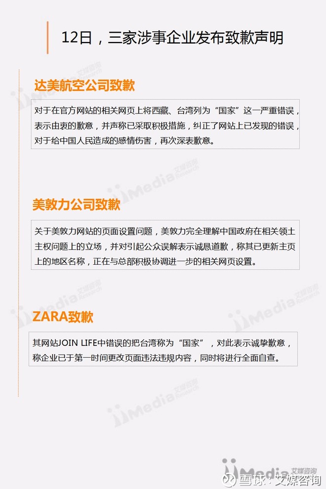 万豪“邮件门”曝光后,有网友陆续扒出不少知名外企也存在类似涉华不当行为,除了在其公开平台将港澳台或台湾列为独立国家,还有在展厅将中国与台湾并列,根据网友举报,相关企业包括,达美航空、ZARA、卡地亚、巴宝莉、香奈儿、爱马仕、宝格丽等。