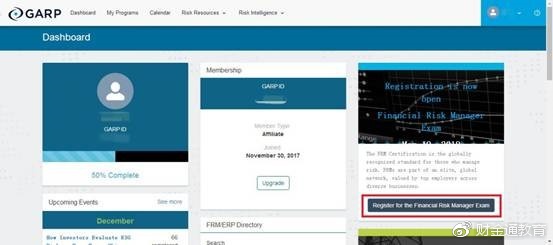 第六步:注册好之后进入个人主页 , 在右上角点击进入FRM考试报名界面