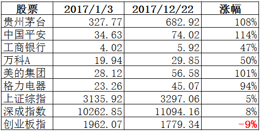 2017年,A股市场可以简单的看着是“上证50的牛市”(如下图),而上证综指也是呈现慢牛的趋势,而代表中小企业和创新型企业的创业板却意外的走出了负增长。与此同时,证券市场的制度也在紧锣密鼓的推进着——IPO虽审核趋严,但是仍是有条不紊的发行,已经常态化了,未来向注册制迈进基本上是很确定的事情了,所以炒壳的朋友还是要注意一下;打击造假的力度也在加大,证监会可谓是抓到一个严惩一个,整个市场也是噤若寒蝉,当然这对于投资者来说是一个很好的现象……总之,A股的投资环境在不断改善,未来将会呈现“发行有序、退市有路”的状态。