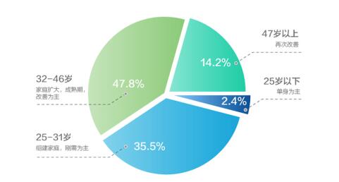 从年龄结构上来看,上有老下有小的70、80后“夹心层”仍然是购房群体的中坚力量,数据显示,32到46岁人群占购房者半壁江山,80后占比更是高达60%,且夫妻携手打拼改善居住的占到大头。此外, 近三年90后购房占比逐年提升,报告分析指出,随着90后集体成年,甚至大部分已纷纷离校步入社会,迎来成家立业等人生大事,“90后不买房”也成为伪命题,未来,90后将成为房企紧密追随的人群,他们的购房行为甚至会影响未来十年的购房风向。