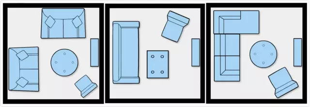沙发的布局可以归结为三种最常见的形式:平行布局、L行布局、围合布局
