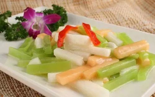山药是中医推崇的补虚佳品,具有健脾益肾、补精益气的作用。青笋则是富含膳食纤维的蔬菜。三者合用,具有调养气血、改善皮肤的滋润感和色泽的作用。