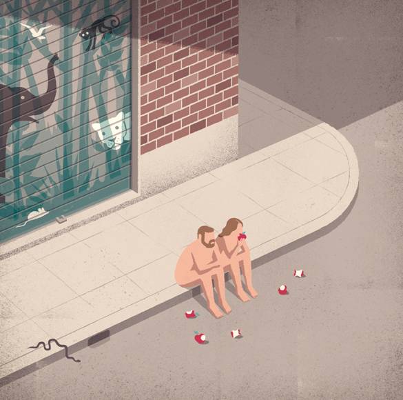 28、现代版“伊甸园”,森林成为了墙上的绘画,亚当和夏娃也只能坐在路边啃苹果。