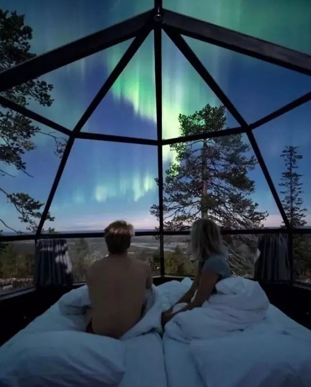 去了芬兰才知道,和心爱的人,躺在穹顶小屋看极光最美秒。