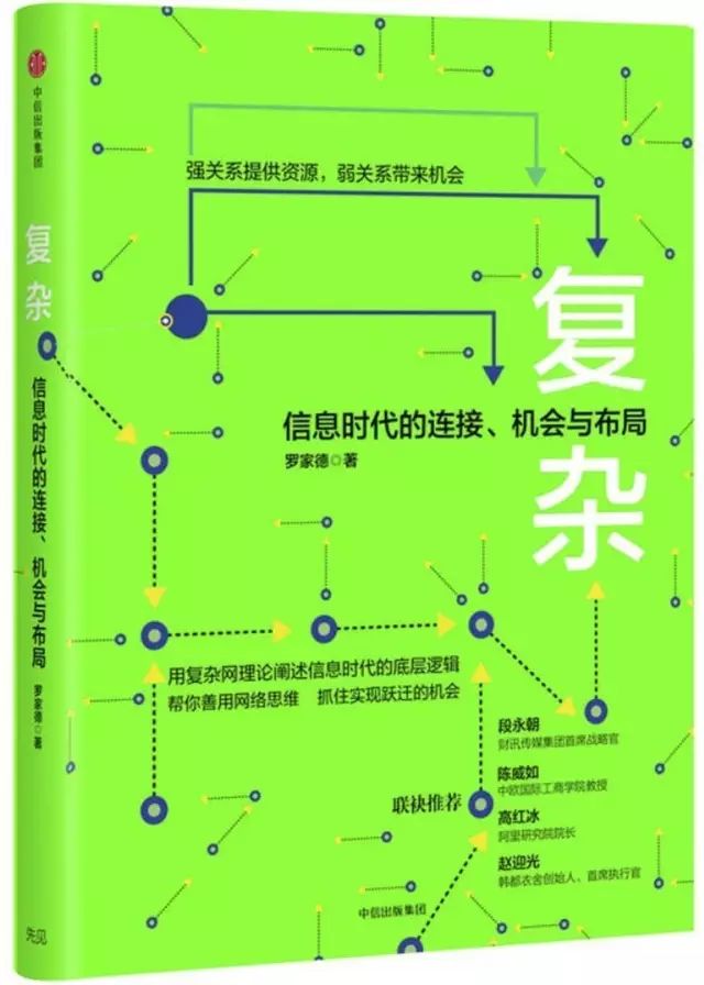 他在2017年出版一本书叫《复杂:信息时代的连接、机会与布局》,他提出,每个人在社会网络中都拥有强连接和弱连接。在强连接的圈子里,每个人都类似的爱好和价值观,因此传递的信息具有同质性。而圈子和圈子之间的弱连接,会带来新鲜的异质信息和随之而来的新机会。