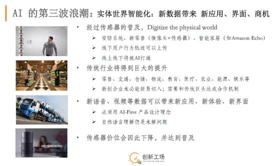 李开复说,第一波第二波浪潮很简单,因为数据已经存在,第三波稍难一些,需要收集数据。