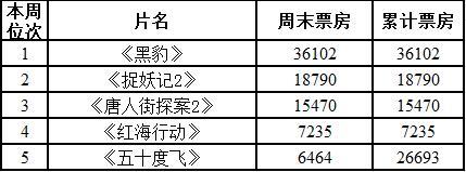 全球周末票房(2018.2.16-2018.2.18)TOP5(单位:美元)