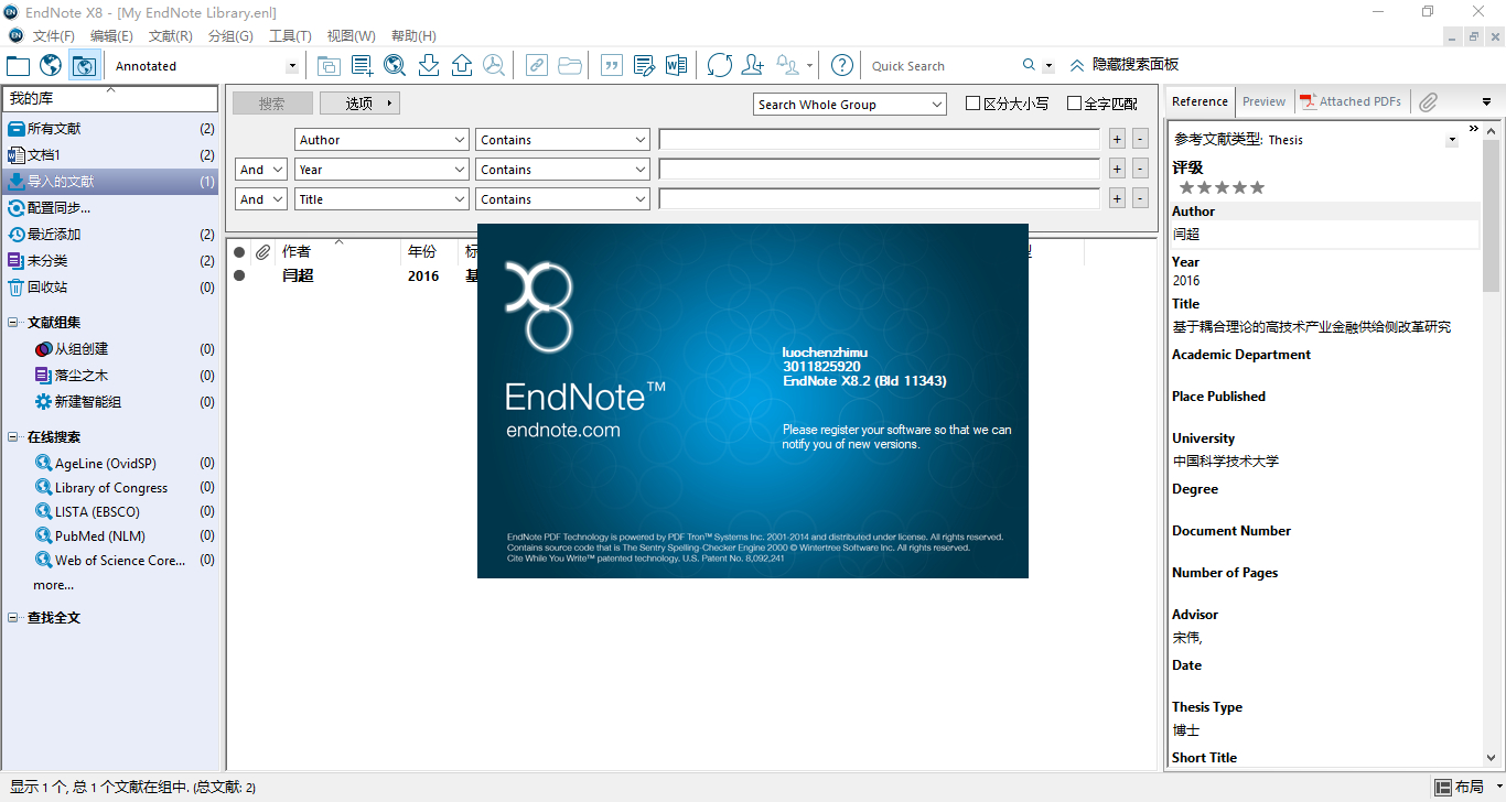 EndNote X8.2 zh_CN 简体中文汉化包+Key+安装包 2018.02.22修正版