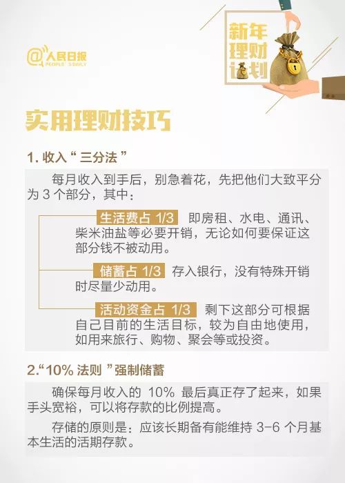 俗话说“你不理财,财不理你”,新的一年,你有理财规划了吗?想理财却不懂方法,想储蓄却总控制不住花销?收入“三分法”、养成记账习惯、合理投资……超实用理财建议↓↓总有一个适合你!转发学习,狗年一起财运旺!