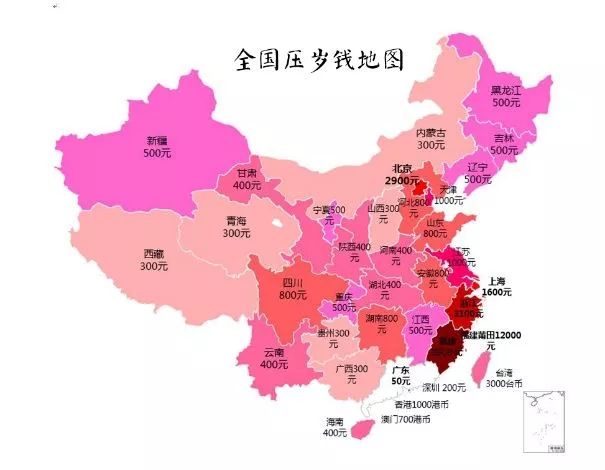 全国压岁钱地图显示,福建孩子压岁钱平均可以收到3500,而福建莆田甚至高达12000元。