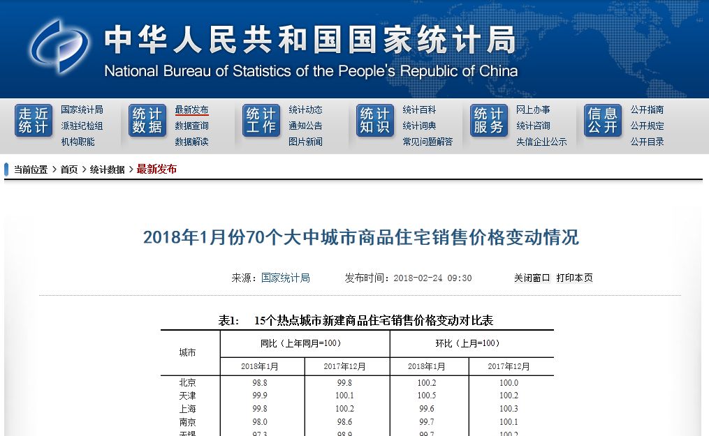 2月24日,统计局发布了2018年1月份的房价数据,多少有点借鉴意义。