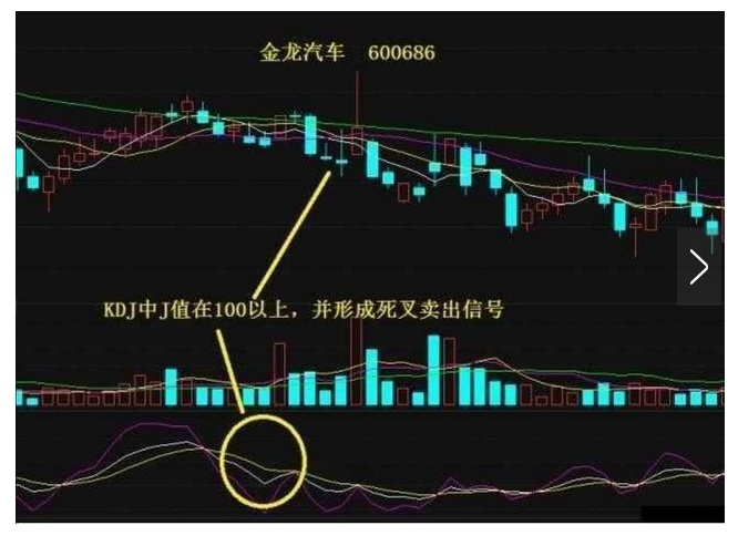 2、超卖区:K、D、J这三值在80以上为超买区,是卖出信号。