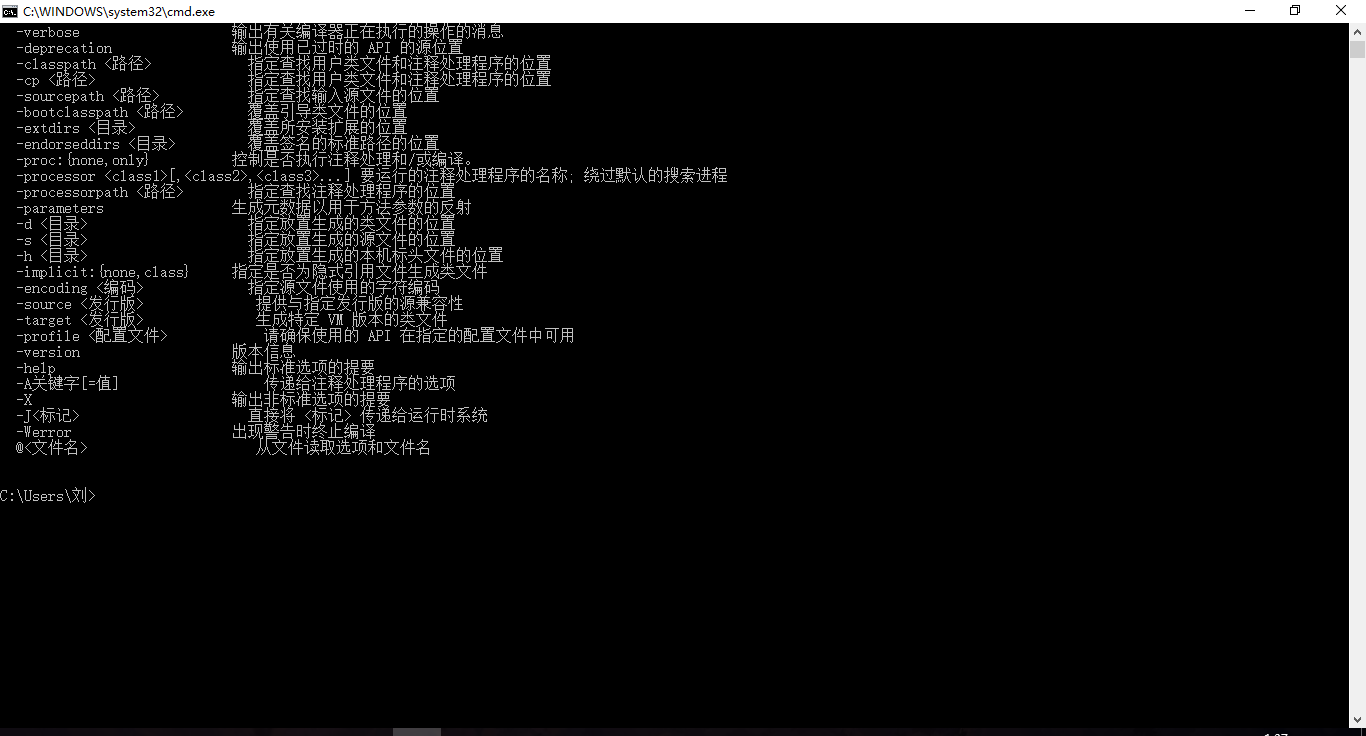 10.但是当你输入javac的时候,会显示这个。这是因为你还没有配置java运行环境,接下来教你们怎么配置java运行环境,配置完运行环境就能使用完整的java了。