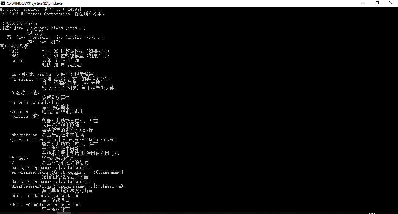 9.点击运行。输入java。如果显示下面内容就表示安装成功。