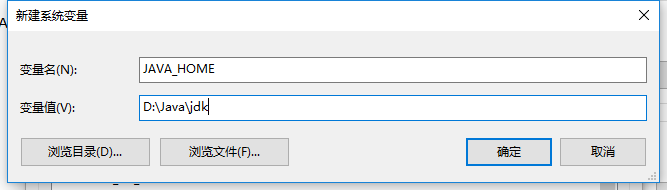 13.新建系统变量JAVA_HOME,变量值填D:\Java\jdk,(这是我的jdk的安装路径,你们安装在其他盘的找到jdk的安装路径复制进去就行)