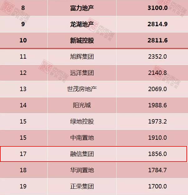 在2017年上半年营收增长70%之时,融信与浙江第二大民营企业海亮集团旗下子公司海亮地产连姻,拿下500万平米低价土地。根据克尔瑞的最新数据,2017年全年中国房地产企业新增货值TOP100中,融信位居第17位,高于多家地产名企。