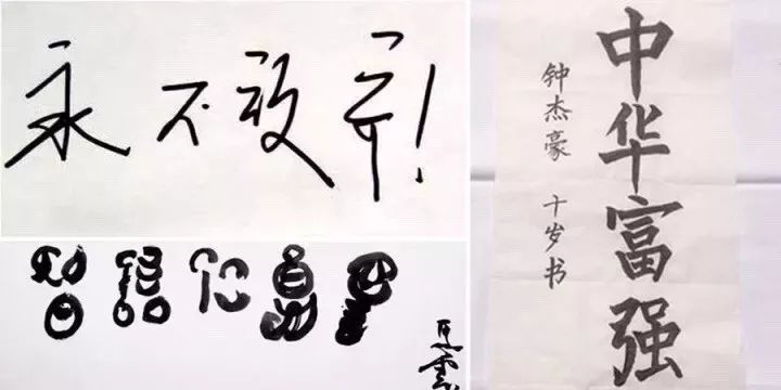 对比一下,右边是十岁小学生的字,是否显得笔锋刚健,线条明丽?