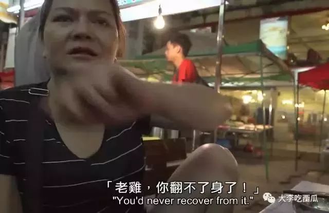 被转片段的人物叫“鸡姐”,南宁中山路夜市摆摊的,她说自己的故事,鸡姐曾经很有钱,后来好赌,输了欠款40万,但她不服气,最后自己做生意还钱,现在是翻身了。