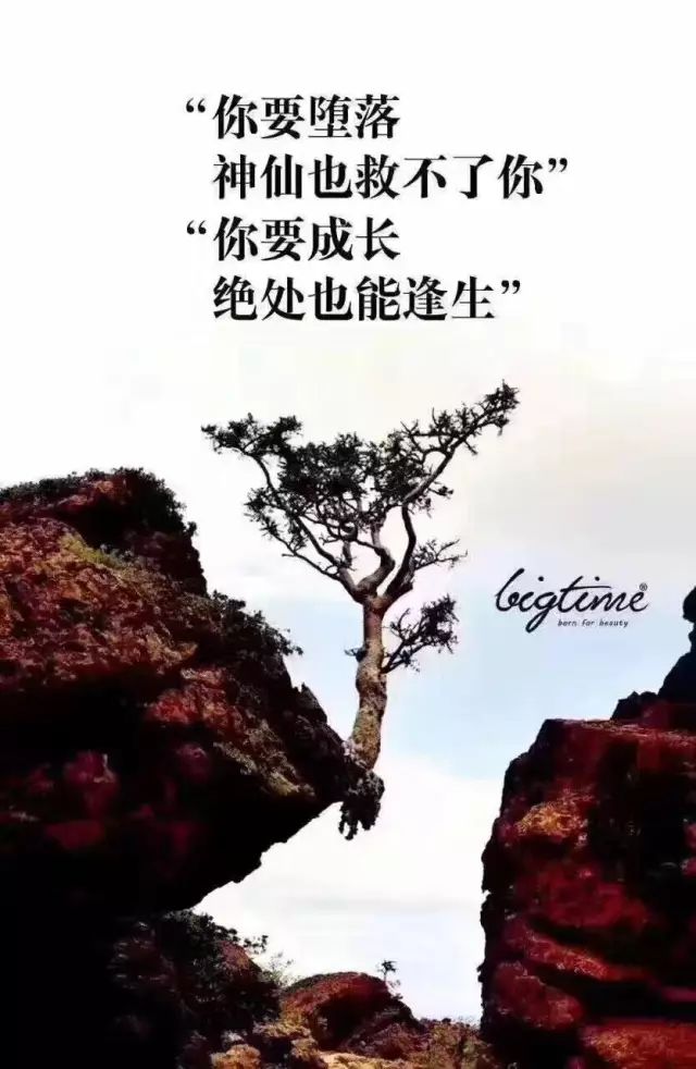 来自你要堕落,神仙也救不了; 你要成长,绝处也能逢生。 ———— 一颗励志的树!