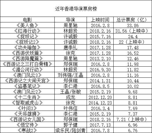 春节档的四片里,《红海行动》的林超贤、《西游记女儿国》的郑保瑞、《捉妖记2》的许诚毅都是香港导演。