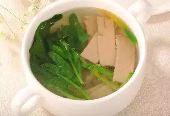 晚上吃菠菜。炒着吃也可以,煨汤吃也可以,最好加点猪肝、牛肝或者羊肝,做成汤。
