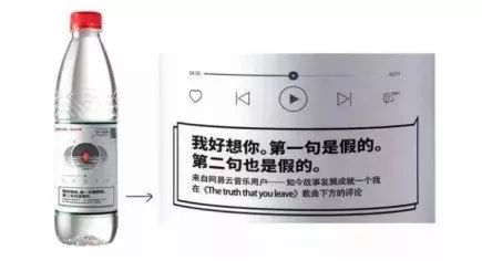 网易云音乐以用户原创乐评出名,农夫山泉在数亿乐评中精选出30条,印在瓶身打造出走心的“乐瓶”。