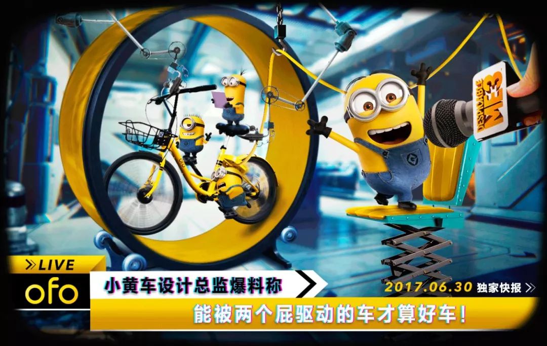 营销界的“老司机”ofo偏偏和坚挺“贱萌”的小黄人IP扯上关系,这绝对是年度最“黄”的营销搭档。