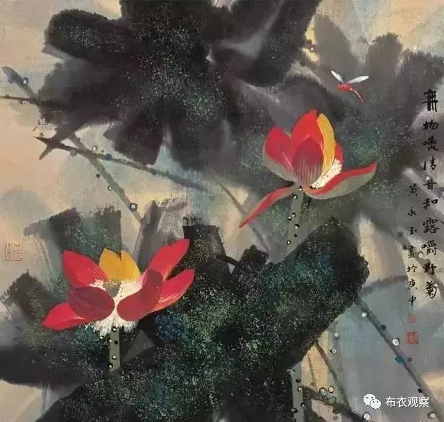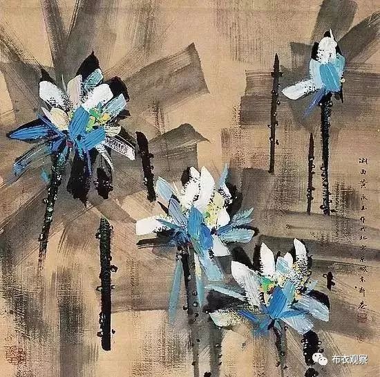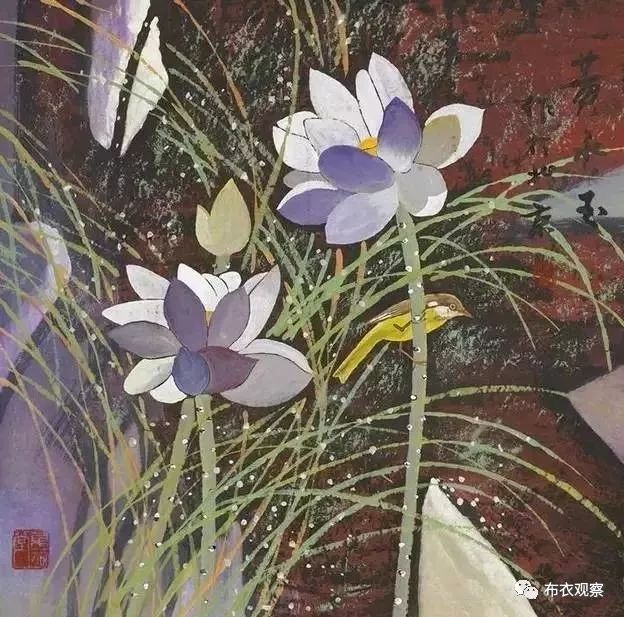 他还喜爱画荷花,已画了8000多张,他笔下的荷花,用色大胆却又高节淡雅。