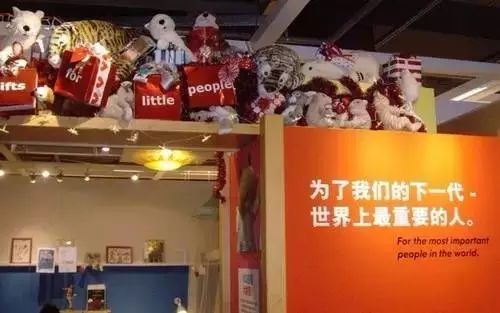 如在厕所外墙写上“为什么宜家会有如此物美价廉的产品,因为大规模的采购+……+出众的设计=这就是原因”;在儿童家具板房的展架上写上“为了我们的下一代,世界上最重要的人。”