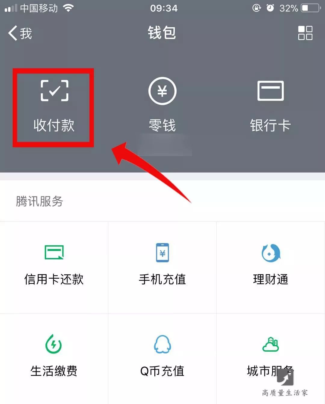 进入钱包后,点击【 收付款 】字样。