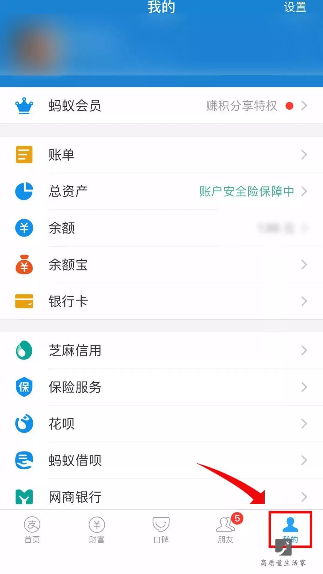 首先进入支付宝首页后,点击右下角【 我的 】。