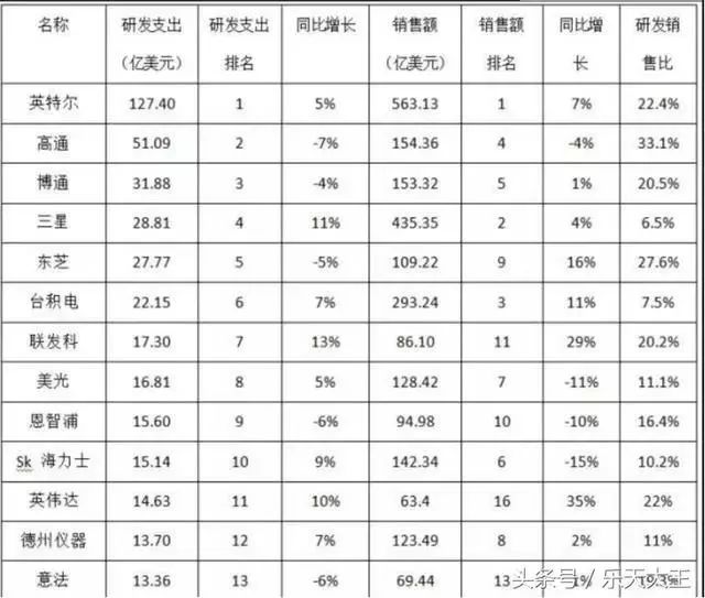 全球前13名,看不到中国大陆的影子,前13名6家是美国的,英特尔、高通、博通占据前三甲。半导体这块,美国是绝对的霸主。