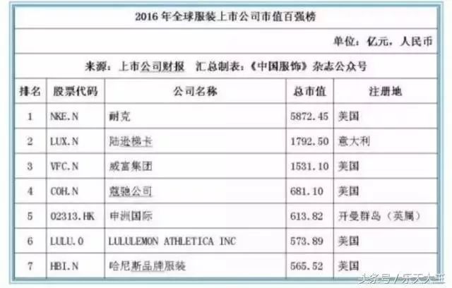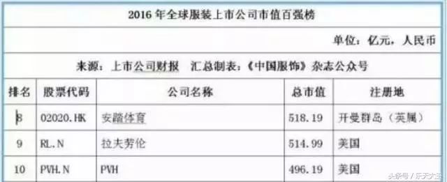 全球前十有7家是美国的,中国有两家公司上榜,申洲国际和安踏体育。中国又输。