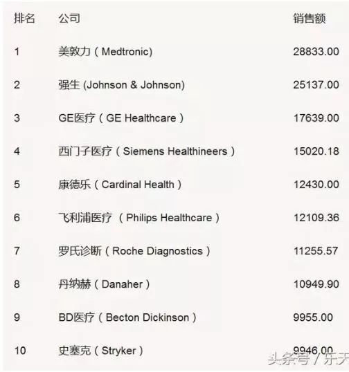 金额以百万美元计。前球前十,美国有6家,处于垄断地位,中国未有一家上榜。