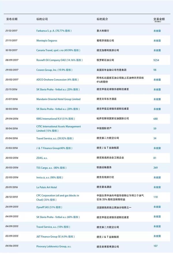行业而言,虽然从披露金额来看,最高的投资领域是能源领域,产业链覆盖油气资源、石油储备、物流和加油站。但若按投资宗数,华信最爱投的是休闲领域,比如捷克甲级足球俱乐部斯拉威亚、两家五星级酒店、旅游公司、在线旅行社等。除此之外,它也布局金融领域。