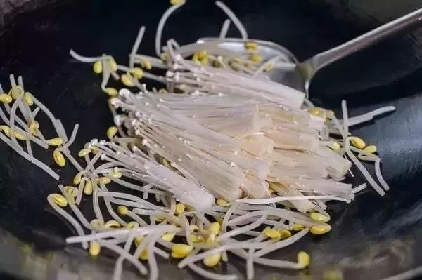 3、热锅加油,先炒豆芽,大约两分钟后加入金针菇,炒至金针菇变软即可盛出锅。